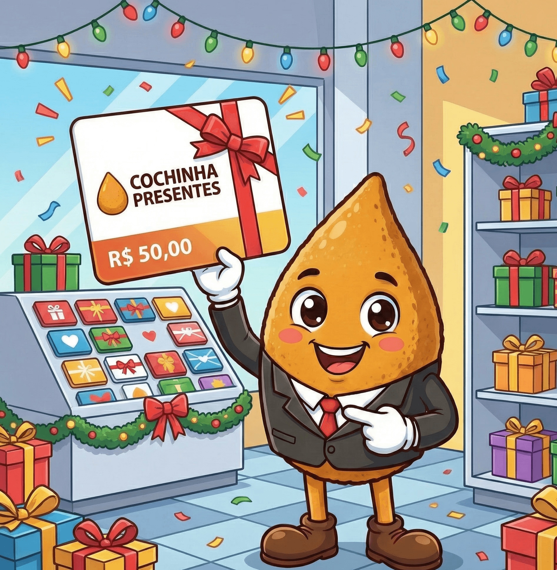 Esqueça a impressão de cartões físicos. Seu cliente compra e envia o presente direto pelo WhatsApp ou Link. Moderno, sustentável e impossível de perder.